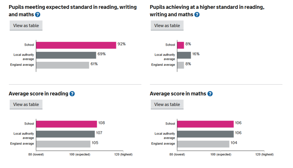 Data for the last three years shows we have exceeded the National and Local Authority averages for achieving the expected standards in reading, writing and mathematics.
